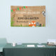 This whimsical welcome to kindergarten banner offers an animal theme featuring the text "Let the adventure begin" on a rustic wood background. The design is accented with a graphic of a fox, raccoon and an owl. Custom text allows you to add the teacher's name and school.
