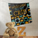 Welcome to my crib, humor baby blankets from Ricaso - designed with an abstract teal, black and orange circle pattern