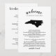 Share a welcome message for your North Carolina wedding guests as well as an itinerary or schedule of the weekend's events. Front features your welcome message with a silhouette map of the state of North Carolina with a heart inside. Handwritten and typeface mix of style make this program really outstanding.