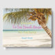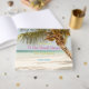 Welcome To Our Beach House with beach and palm tree cover photo and casual yellow, blue and pink text. Personalize family name and photo.