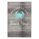 Set off your nautical decor with this Welcome To Our Beach House Personalized Faux Canvas Print Sign. This modern design has a faux wood shiplap background and big teal crab. The phrase "welcome to our beach house" in white trendy calligraphy brushstroke script typography lettering. Your personalized family last name is on the lower area. Perfect home wall decor for coastal, beach or nautical theme!