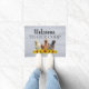 A gorgeous trio of Silkie Bantam chickens with a row of bright and cheery sunflowers. The background is simulated pale gray wood. You can change the phrase “Welcome To Our Coop” if you prefer something different. This chicken and sunflower doormat would be the perfect addition to any farmhouse styled home or chicken coop.