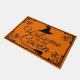 Let's get "witchy" this halloween! Cute black and orange "welcome to our coven" doormat featuring a corner scrolls design, witch hat, and broom silhouettes in black. Make a spooky statement!