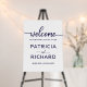 A chic calligraphy wedding welcome sign. Easy to personalize with your details and add your own background color. Please feel free to contact me if you have any special requests. PLEASE NOTE: For assistance on orders, shipping, product information, etc., contact Zazzle Customer Care directly https://help.zazzle.com/hc/en-us/articles/221463567-How-Do-I-Contact-Zazzle-Customer-Support-.