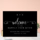 Set the tone for your special day with this sleek black-and-white acrylic wedding sign. Featuring "Welcome to Our Happily Ever After" in a stylish handwritten script with graceful swashes, this modern minimalist design is effortlessly elegant. Personalize it with your initials, names, and wedding date for a timeless, sophisticated touch. © Kimbellished, LLC