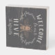 Welcome guests with this cute bee themed wooden box sign featuring a vintage style honeybee illustration adorned with botanical leaves and rope trim detailing. "Welcome to our hive" appears in ivory lettering. Personalize with your family name along the bottom.