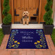 Personalize your entrance with this charming blue floral doormat! Featuring a navy blue background and delicate digital watercolor flowers along the borders, this doormat is perfect for adding a touch of elegance to your home. Customize it with a personal greeting and name for a unique housewarming gift or a lovely everyday touch. This fully customizable template allows for easy design transfer to other products.