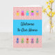 Bright and cheerful pineapple design card with the words "Welcome to Our Home". The card has a peach colored design in the background with colorful pineapples. The wording is in a blue boxed off area. You can change all the words on the card. Thanks to Creative Fabrica for some of the elements in the design.