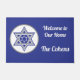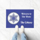 Welcome your guests with this beautiful, custom doormat. Star of David design with "Welcome to Our Home" in modern white font, as well as your own name. All text sizes, colors and fonts can be changed to suit your own taste. Fully customizable. Also makes a nice Hanukkah gift.