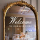 No instructions on how to apply this product to the glass/mirror. When I tried to apply, it is slightly blurry, which defeats my purpose of having this as a welcome sign mirror for selfies and pictures at my wedding. I took it off and will find a new product. Sizing didn't seem right to me.
