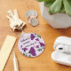 Do you provide your new employees with a key to the building, their office, or a file cabinet? Get them the tools they need and make them feel welcome with this round keychain. This unique keychain features bright purple flowers that wind and curve their way along the inexpensive round keychain. The bright purple of the flowers is complimented by the dark green leaves and stems. "Welcome to our team" as well as the company name can quickly and easily be customized to suit your needs.