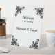 Three lines of customizable text highlight this fancy framed wedding sign.