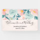 A wedding banner which says: Welcome to our Wedding with your personalized names. An elegant floral border. Flowers and leaves in pink and green.