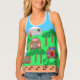 Women's All-Over Print Racerback Tank Top, White Piping, S