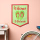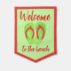 Pennant features an original illustration of a pair of flip flops, with WELCOME TO THE BEACH in a fun font.