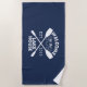 Add custom style to your weekend home with our lake house beach towel. Navy blue and white towel features "Welcome to the Lake House" in woodsy vintage typeface with a rope illustration and two crossed canoe paddles. Customize with the year you started life at the lake!