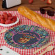 A Bright Tiki Mask Luau Party Paper Plate In Blues And Pinks For A Hawaiian Luau