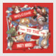Welcome your party guests with this colorful window cling, featuring a cartoon menagerie of funny animals dressed up like enthusiastic sports fans waving their scarves in celebration. Use "Personalize this template" to change the "WELCOME TO THE PARTY HOUSE!" text if desired. The elated animal crowd includes dogs, a cat, a lizard, a rabbit and a fruit bat.