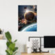 Waiting for clearance in geostationary orbit to leave the home planet and explore new worlds in outer space. Personalizable digital artwork by Liz Molnar. Planets, stars, space clouds, lights were made with basic Photoshop effects and brushes, planets' surfaces created from photos.