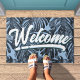 Welcome Tropical Boho Blue Jungle Leaves Doormat