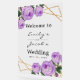 Welcome Wedding Gold Glitter Geo Purple Floral Acrylic Sign