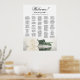 This beautiful wedding seating chart showcases a solitary long-stemmed white, ivory, or cream colored rose, delicately resting on its side and casting a reflection in a serene pool of water. The title reads "Welcome - please find your table," with the names of the couple and the wedding date positioned below. The chart provides room for up to 200 names, arranged in alphabetical order for effortless navigation by your guests. With its tasteful and refined aesthetics, this design exudes elegance, romance, sophistication, and a touch of chic, adding an air of charm and poise to your wedding celebration.