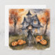 Cute little Witch waiting outside her humble house, all ready to welcome her Halloween guest