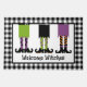 This whimsical Halloween design features a black and white Buffalo Plaid background with a white box in the center. The center image is the bottom half of three witches and the message reads, “Welcome Witches”. You can customize this text.