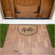 Greet your guests with this welcoming hello script faux coir doormat that adds a friendly touch to your home. Featuring elegant black script text and a double-line border on a faux coir texture, this design brings a rustic and inviting charm to your entryway decor. Perfect for home decorators or hosts looking to create a warm and hospitable atmosphere at their doorstep.