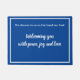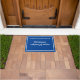 Plush door mat is shown in blue and has a white border and text. Text reads " we choose to serve the Lord our GOD" and "Welcoming you with peace, joy and love".