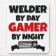 This text design features the trendy phrase "Welder by Day Gamer by Night" and is perfect for any welder who loves playing games.