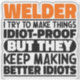 Funny Welder Sayings "Welder I Try To Make Things Idiot Proof But They Keep Making Better Idiots". Grab this Funny Welding design as a funny gifts for an awesome mom, dad or friend.