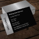 Welding business cards with silver metallic looking design element digitally printed on the front, text space you can easily personalize and black background color you can change if you want to. Designed as a business card template for a welder, metal works, or aluminum company.
