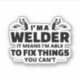 Add a spark of humor to your world of welding with our hilarious and quirky welding stickers! Let your welding gear and personal items radiate laughter as you showcase your love for the craft. Our funny welding stickers are the perfect blend of creativity and wit, featuring whimsical illustrations that capture the lighter side of metal fabrication. From welder caricatures in amusing poses to comical depictions of sparks and welding mishaps, these stickers are sure to bring a smile to your face and those around you. Elevate your welding space, toolbox, and accessories with these lighthearted designs that celebrate the camaraderie and joy within the welding community. Embrace the fusion of fun and function with our one-of-a-kind funny welding stickers, and let the laughter weld you closer to your passion!