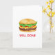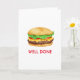 A fun design of a juicy cheese burger. The text beneath says Well Done. The inside says Congratulations on your achievement! This is a great way to congratulate someone on graduation, achieving a milestone or success. This would especially fun to give to someone who loves burgers. Artwork by Delightful-Doodles.