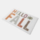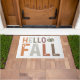 This fall-themed design warmly welcomes the autumn season with the phrase "Hello Fall." The words are arranged in a simple yet visually appealing layout, with "Hello" placed above "Fall." Each letter in the phrase is presented in a bold, blocky font with a slightly distressed texture, giving it a rustic, weathered look that complements the autumnal theme.