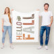 This fall-themed design warmly welcomes the autumn season with the phrase "Hello Fall." The words are arranged in a simple yet visually appealing layout, with "Hello" placed above "Fall." Each letter in the phrase is presented in a bold, blocky font with a slightly distressed texture, giving it a rustic, weathered look that complements the autumnal theme.