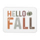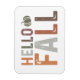 This fall-themed design warmly welcomes the autumn season with the phrase "Hello Fall." The words are arranged in a simple yet visually appealing layout, with "Hello" placed above "Fall." Each letter in the phrase is presented in a bold, blocky font with a slightly distressed texture, giving it a rustic, weathered look that complements the autumnal theme.