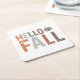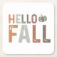 This fall-themed design warmly welcomes the autumn season with the phrase "Hello Fall." The words are arranged in a simple yet visually appealing layout, with "Hello" placed above "Fall." Each letter in the phrase is presented in a bold, blocky font with a slightly distressed texture, giving it a rustic, weathered look that complements the autumnal theme.