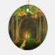 A great hall cut in the side of the hill, and along each wall an aisle of trees. At the far end a shallow bay with an arched roof, and a little stream tinkling down the wall like a fine curtain in front of it. In the bay a table and two vessels, which glow with a golden and a green light. The blending of the two lights is like the summer sun shining through young trees. The trees also glow, every leaf edged with light, green and gold and red.