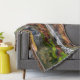 A quality printed throw has its advantages. This is a much finer weave throw than its loopier cousins, and though lighter, it is worth the investment for custom room accessorizing. The back is much prettier than the typical brown, and the fringe on the long sides very vivid, the selvage nicely done. Before photographing, I washed the throw in cold water, delicate, with a thicker woven throw the same size. On tumble dry low, this throw was dry in half the time as the other. This is a very practical quality if you use throws for furniture covers or to wrap up in frequently. The sleekness of the fabric makes it a great layer for accenting or protecting without the feeling of sitting on too much stuff. Perfect for napping or when you feel a light chill coming on. The color printing is beautiful and on this fabric, matched the design and color of my Photoshop image. This is an advantage for blending room fabrics and colors. The fringe on the short sides prints the colors from the design image and therefore varies from the side fringe. I streaked a white fractal line through the plaid pattern to give the illusion of weaving. This printed as crisp as an illusory thread, and put some white in the short side fringe, showing another advantage of print vs loomed- for artistic purposes, line lines, detail, and color integrity can be planned and preserved. My loomed throws have color limitations and more of a needlepoint texture. Print throws reproduce an exact image. The throw felt a little stiff straight out of the package, but this went away in the first delicate wash. Of course I searched the wash water for ink or bleeding and there was none.
