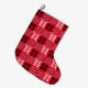 Perfect! Exactly what I ordered! I uploaded a picture of my blue chow, and the screen print was incredible. the back side of the stocking was the red and black checkered print. my puppy's name was also printed on the cuff of the stocking. PERFECT! Highly recommend this product! My puppy's name was screen printed onto the cuff of the stocking, the font was perfect!