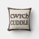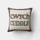 A pretty Throw Pillow with the words 'cuddle' and 'cwtch' (Welsh for 'cuddle' or 'hug'), filled with a ditzy pattern of bright flowers on a black background.