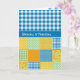 A Grandparents Day Card with 'Happy Grandparents Day' in Welsh with a Faux Patchwork of Daffodil patterns teamed with Blue and White Check Gingham.