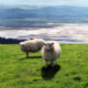A photographic design of Welsh mountain sheep and views over the Dyfi estuary. Wales UK.