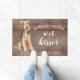 Funny beware of the wet kisser" Welsh Terrier Dog door mat set on a rustic faux background. Visit our shop to view a large assortment of dog breads