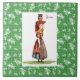 Each region and neighborhood of Wales has its own traditional manner of dress. In this series of collector's tiles, we offer 12 of those, 19th Century studio tinted engravings set in a white lace design. A wood frame, available here, makes a stunning display.