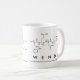 Wende spelled out in amino acids as W E N D E (Tryptophan Glutamic acid Asparagine Aspartic acid Glutamic acid) on a mug for the scientist in you.