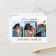 We’re engaged! Share your exciting news with family and friends using this customizable engagement announcement postcard featuring three photo slots. The design includes elegant calligraphy script and classic typography. To personalize it, click "Personalize This Design," upload your photos, and enter your details. Zazzle will take care of the rest!