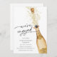 Announce your engagement with a modern invitation featuring a champagne bottle popping in celebration. Perfect for engagement parties, announcement dinners, and chic celebrations. Explore the full collection for matching party items.